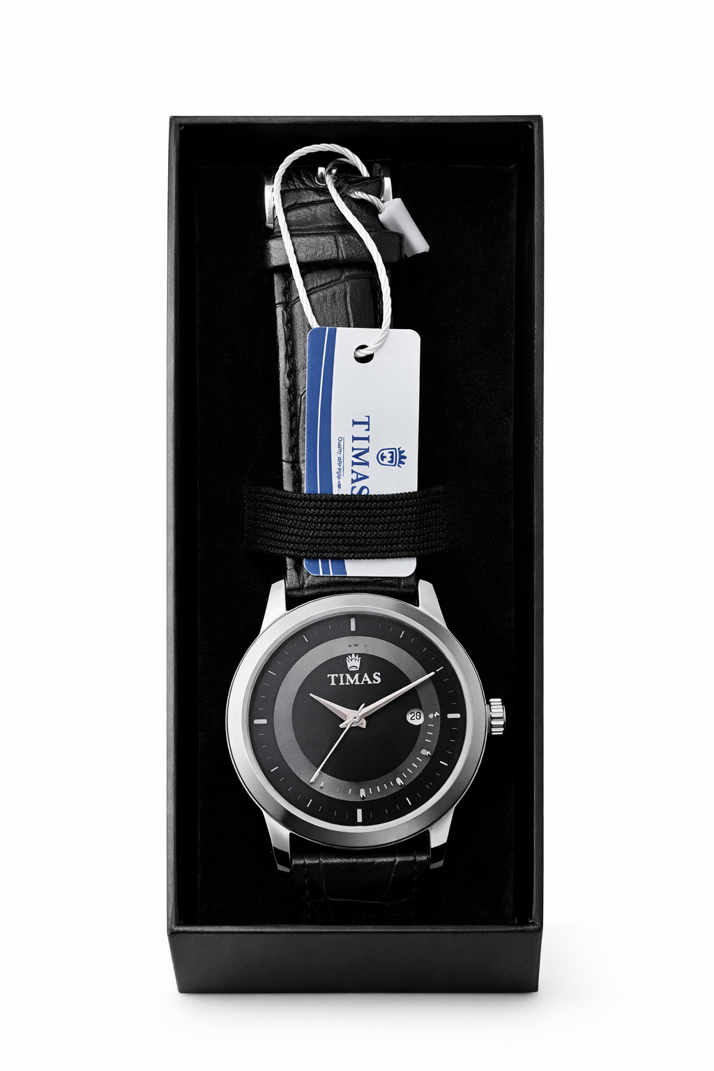 TIMAS WATCH FOR MEN- Leather Strap Black – Silver Dial – Quartz Watch for Gents